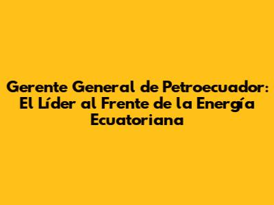 ¿Quién es el Gerente General de Petroecuador? Su Papel Crucial