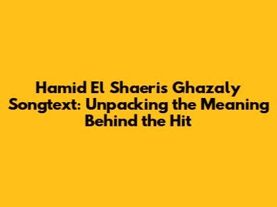 Ghazaly Songtext: Hamid El Shaeri's Beloved Hit Explained