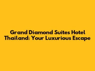 Hey guys! Planning a trip to Thailand and looking for a place to stay that screams luxury? Look no further! Let's dive into everything the Grand Diamond Suites Hotel Thailand has to offer. Nestled in the heart of Bangkok, this hotel is more than just a place to crash; it's an experience. From its prime location to its top-notch amenities, it's designed to make your stay unforgettable. So, buckle up and let’s explore what makes the Grand Diamond Suites Hotel a standout choice for your Thai adventure.