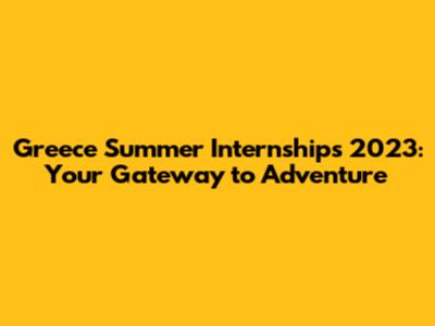 Greece Summer Internships 2023: Your Gateway To Adventure