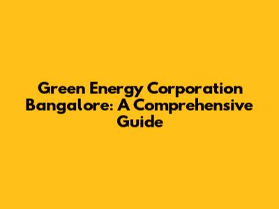 Green Energy Corporation Bangalore: A Comprehensive Guide