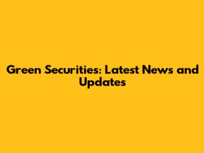 Green Securities: Latest News And Updates
