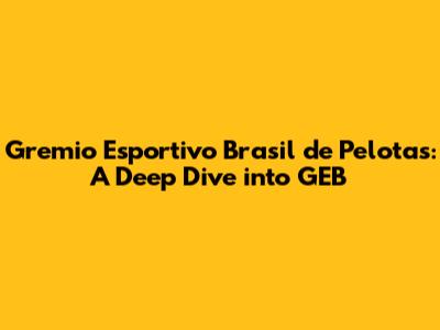 Gremio Esportivo Brasil De Pelotas: A Deep Dive Into GEB