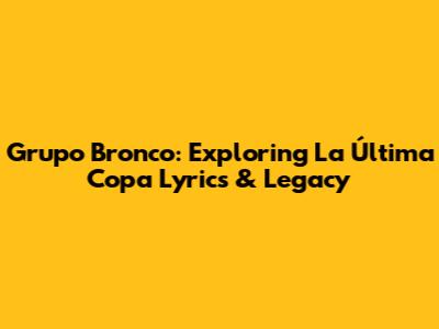 Hey music lovers! Ever found yourself humming along to a tune and wondering, "What's the story behind this song?" Well, today, we're diving deep into the heart of Grupo Bronco, specifically their hit song, "La Última Copa." This isn't just any song; it's a journey, a feeling, a story that resonates with so many of us. So, grab your virtual seat, maybe a drink (the last copa, perhaps?), and let's unravel the magic woven into the lyrics and the enduring legacy of Grupo Bronco.