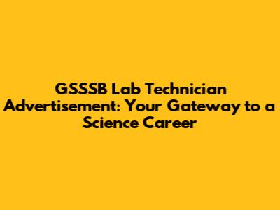 GSSSB Lab Technician Jobs: Your Guide To Landing The Role