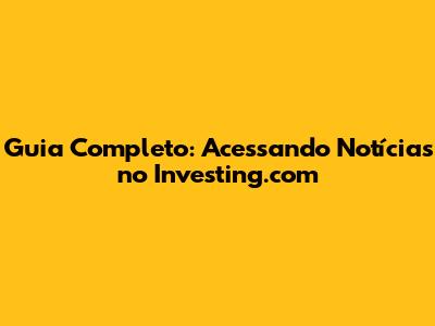 Guia Completo: Acessando Notícias No Investing.com