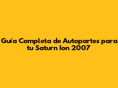 Guía De Autopartes Para Tu Saturn Ion 2007