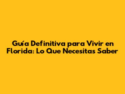 Guía Definitiva Para Vivir En Florida: Lo Que Necesitas Saber