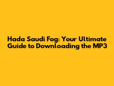 Hada Saudi Fog: Your Guide To Downloading The MP3