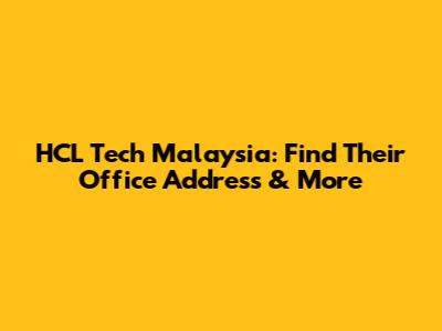 HCL Tech Malaysia: Find Their Office Address & More