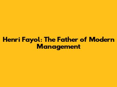 Henri Fayol: The Father Of Modern Management