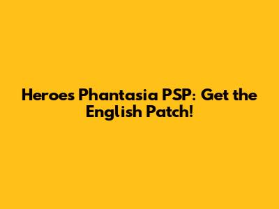 Why You Need the Heroes Phantasia PSP English Patch