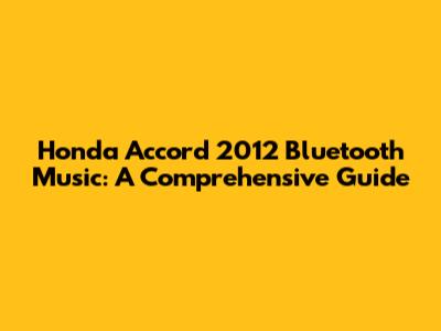 Honda Accord 2012 Bluetooth Music: A Comprehensive Guide