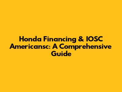 Honda Financing & IOSC Americansc: A Comprehensive Guide