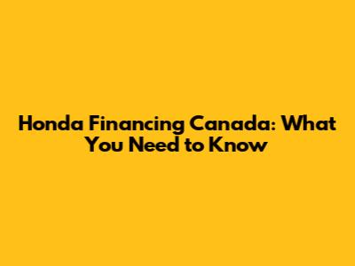 Honda Financing Canada: What You Need To Know