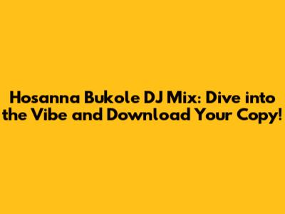 Hosanna Bukole DJ Mix: Download, Listen, And Vibe!