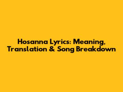 Hosanna Lyrics: Meaning, Translation & Song Breakdown