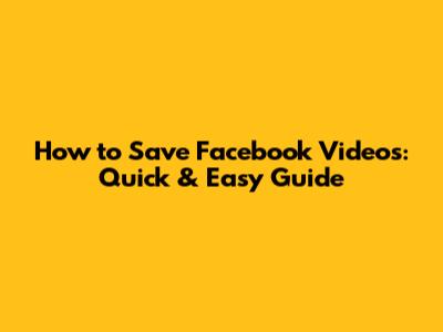 How To Save Facebook Videos: Quick & Easy Guide