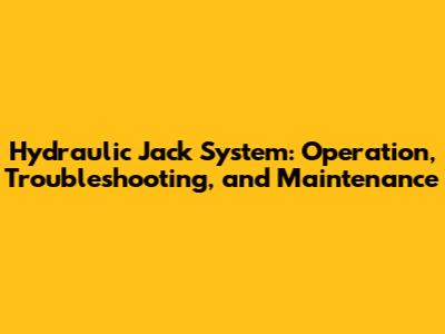 Hydraulic Jack System: Operation, Troubleshooting, And Maintenance