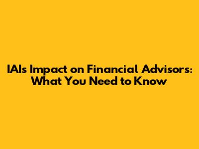 IAI's Impact On Financial Advisors: What You Need To Know