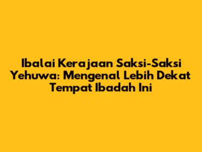 Guys, pernahkah kalian mendengar tentang Ibalai Kerajaan Saksi-Saksi Yehuwa? Atau mungkin kalian pernah melihat bangunannya tapi belum tahu apa itu sebenarnya? Nah, di artikel ini, kita akan membahas secara mendalam mengenai tempat ibadah yang unik ini. Kita akan kupas tuntas mulai dari sejarah, fungsi, hingga ciri khasnya. Jadi, simak terus ya!