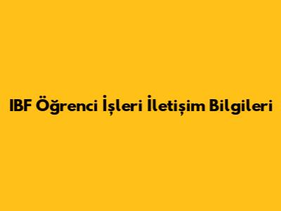 IBF Öğrenci İşleri İletişim Numarası