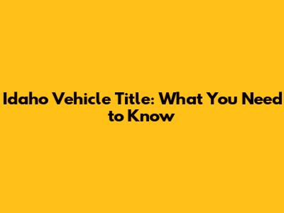 Idaho Vehicle Title: What You Need To Know