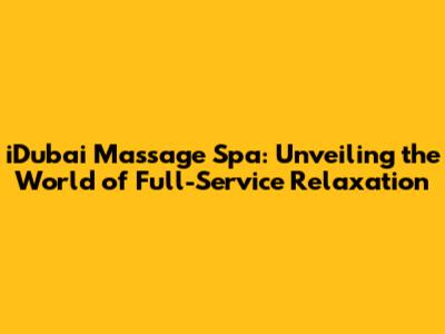 Hey there, fellow relaxation seekers! Are you ready to dive into the world of iDubai Massage Spa and explore the ultimate escape for your mind and body? We're talking about a full-service experience that goes beyond the typical massage, offering a complete journey into tranquility. Let's get down to the details of what makes iDubai Massage Spa a must-visit destination for anyone looking to unwind and rejuvenate. This isn't just a massage; it's a personalized experience crafted to melt away your stress and leave you feeling utterly refreshed. We'll explore the array of services, the ambiance, and what makes this spa a standout choice for those seeking a premium relaxation experience. Prepare to be transported to a haven of serenity where every detail is designed with your well-being in mind. So, buckle up, and let's embark on this journey to discover the magic of iDubai Massage Spa!