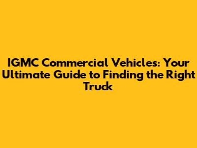IGMC Commercial Vehicles: Your Guide To Finding The Right Truck