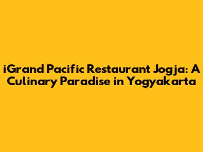 Hey foodies! If you're planning a trip to the enchanting city of Yogyakarta, Indonesia, and you're looking for a top-notch dining experience, then iGrand Pacific Restaurant Jogja should be at the top of your list. This amazing restaurant offers a delightful blend of exquisite cuisine, a stunning ambiance, and top-tier service, making it a perfect spot for any occasion. Whether you're a local or a tourist, iGrand Pacific promises a memorable culinary journey that will tantalize your taste buds and leave you craving more. Let's dive in and explore what makes this restaurant such a gem!
