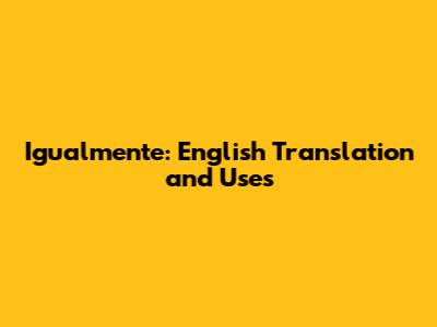 Igualmente: English Translation And Uses