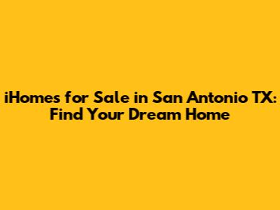 Hey guys! Are you on the hunt for iHomes for sale in San Antonio, TX? You've landed in the right spot! San Antonio is a fantastic city with a vibrant culture, delicious food, and a booming real estate market. Whether you're a first-time homebuyer, looking to upgrade, or searching for the perfect investment property, San Antonio has something for everyone. In this article, we'll dive deep into the world of iHomes, explore the best neighborhoods, and give you all the insider tips you need to snag your dream home.