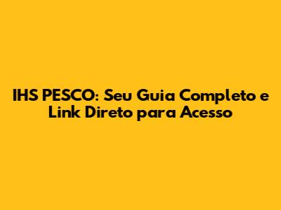 IHS PESCO: Seu Guia Completo E Link Direto Para Acesso