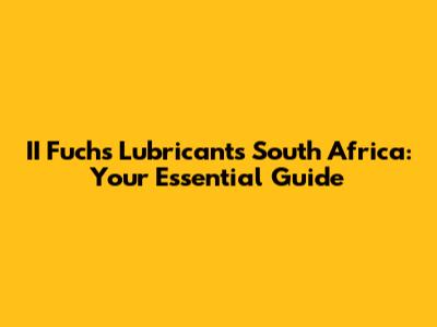 II Fuchs Lubricants South Africa: A Comprehensive Guide