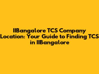 IIBangalore TCS: Find The Company Location