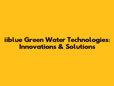Iiblue Green Water Technologies: Innovations & Solutions