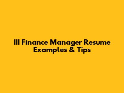 III Finance Manager Resume Examples & Tips