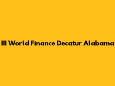 In Decatur, Alabama, III World Finance has established itself as a reliable resource for those seeking financial assistance. They understand the local community and the specific needs of its residents. By offering accessible loan options and prioritizing customer service, they've become a trusted name in the area. So, if you're in Decatur and considering a loan, III World Finance is definitely worth checking out.