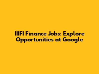 IIIFI Finance Jobs: Explore Opportunities At Google