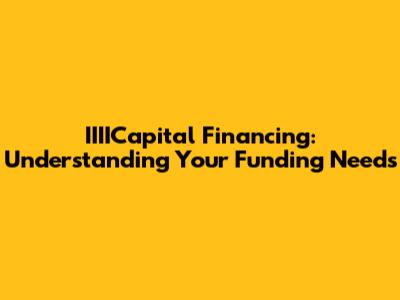 IIIICapital Financing: Understanding Your Funding Needs
