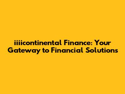 Iiiicontinental Finance: Your Gateway To Financial Solutions