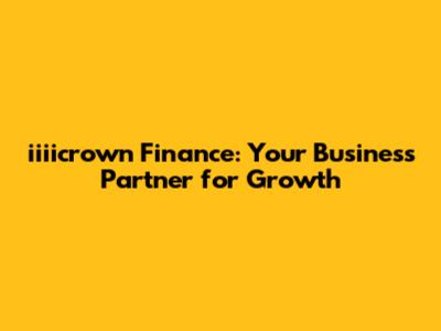 Iiiicrown Finance: Your Business Partner For Growth