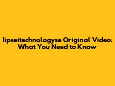 Iipseitechnologyse Original Video: What You Need To Know