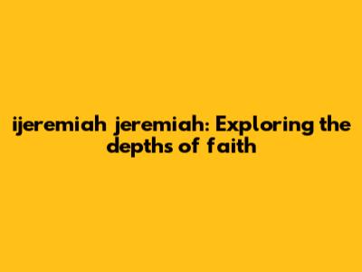 Ijeremiah Jeremiah: Exploring The Depths Of Faith
