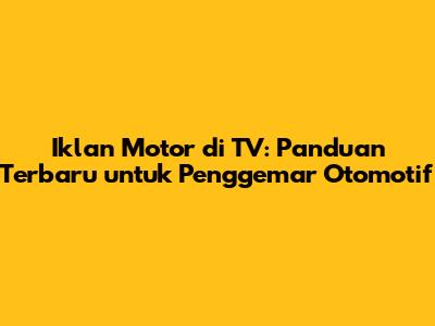 Iklan motor di TV terbaru selalu menjadi sorotan utama bagi para penggemar otomotif di Indonesia. Setiap kali ada peluncuran model baru atau promosi menarik, iklan-iklan ini hadir untuk memanjakan mata dan telinga kita. Sebagai penggemar motor, pasti kalian semua setuju bahwa menyaksikan iklan motor di TV bukan hanya sekadar hiburan, tetapi juga sumber informasi penting. Iklan-iklan ini memberikan gambaran awal tentang fitur-fitur terbaru, desain yang memukau, serta teknologi canggih yang ditawarkan oleh motor-motor terkini. Selain itu, iklan motor di TV juga sering kali menampilkan bintang iklan yang populer dan adegan yang menarik, membuat kita semakin penasaran dan tertarik untuk memiliki motor impian tersebut. Dalam panduan ini, kita akan membahas secara mendalam tentang bagaimana iklan motor di TV terbaru mempengaruhi kita, apa saja yang perlu diperhatikan, dan bagaimana cara terbaik untuk tetap up-to-date dengan informasi terbaru seputar dunia otomotif.
