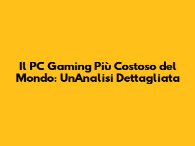 Il PC Gaming Più Costoso Del Mondo: Un'Analisi Dettagliata