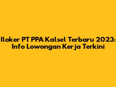 Iloker PT PPA Kalsel Terbaru 2023: Info Lowongan Kerja Terkini