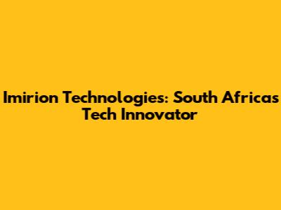 Imirion Technologies: South Africa's Tech Innovator