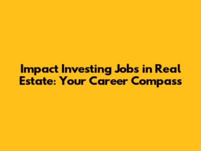 Impact Investing Jobs In Real Estate: A Comprehensive Guide