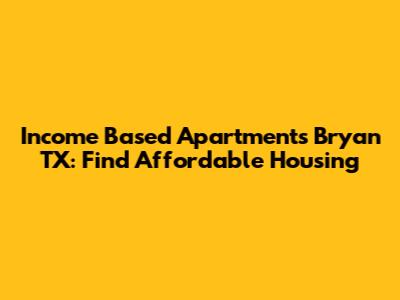 Income Based Apartments Bryan TX: Find Affordable Housing